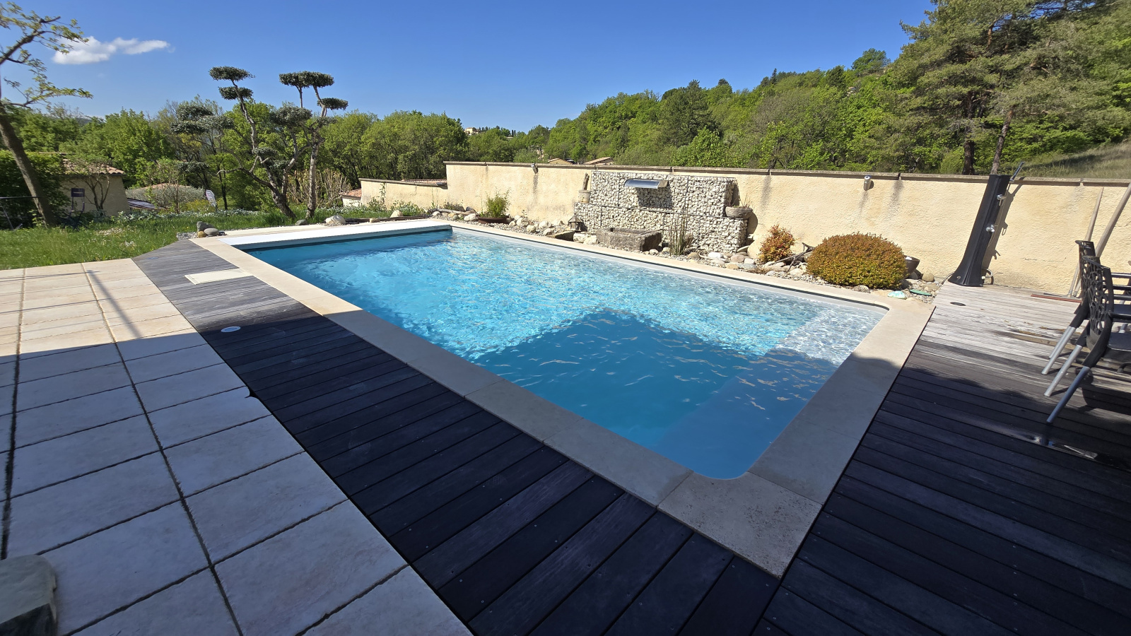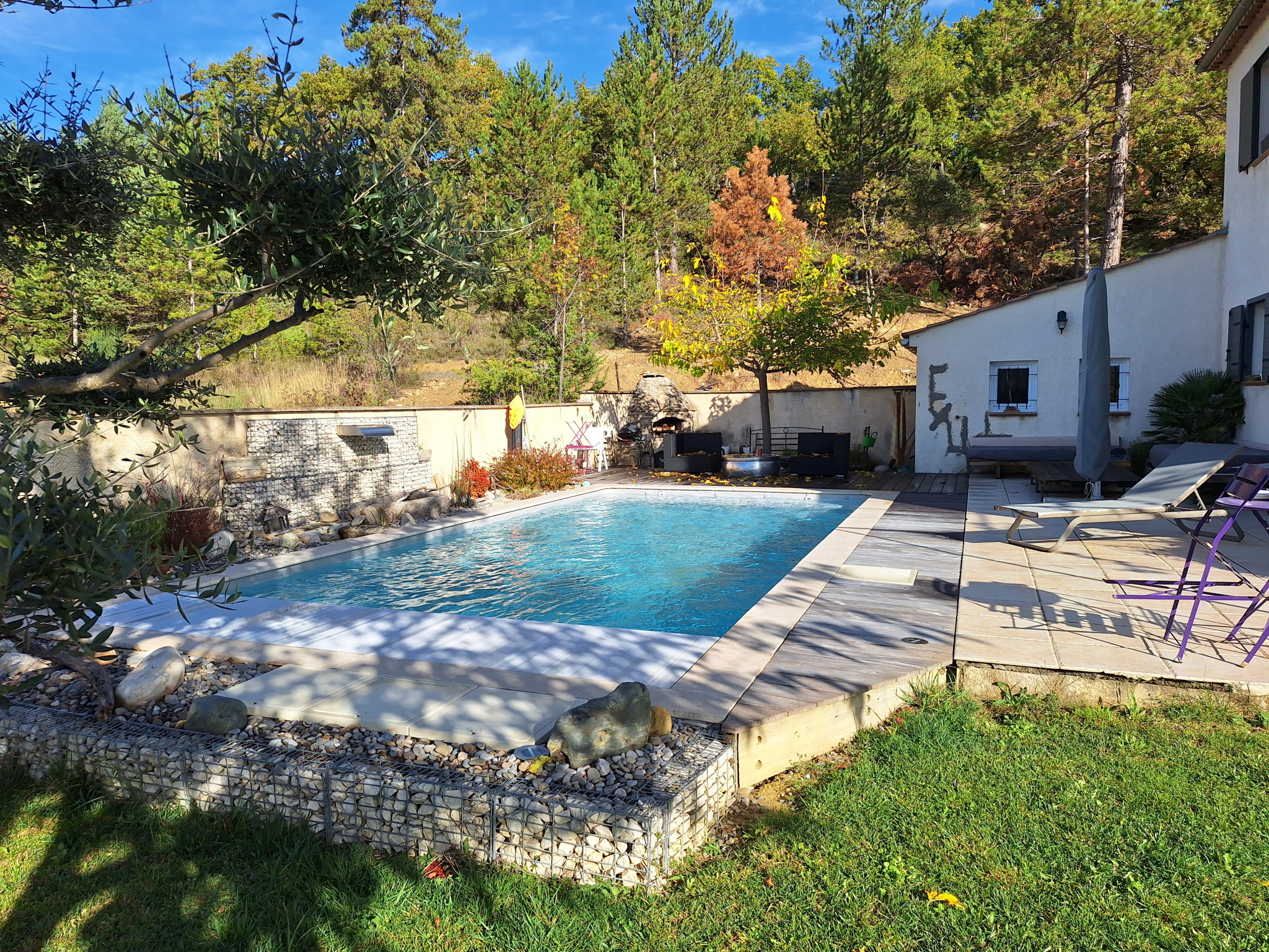 Outdoors, you'll enjoy a beautiful saltwater swimming pool (8x4 m) with a recent liner (3 years old) and a security system with an electric shutter, all perfectly integrated into a wooded garden with several terraces surrounding the house.