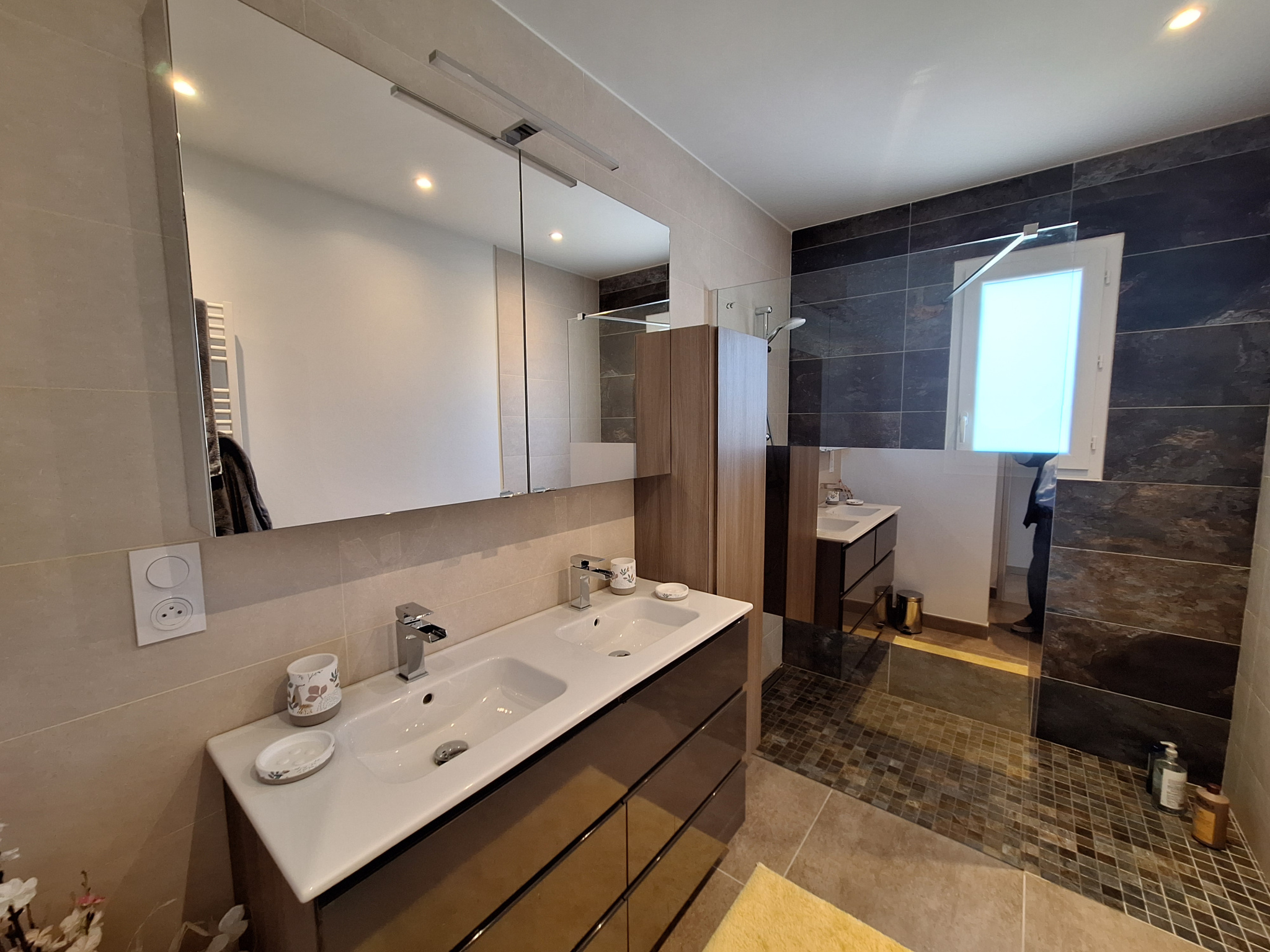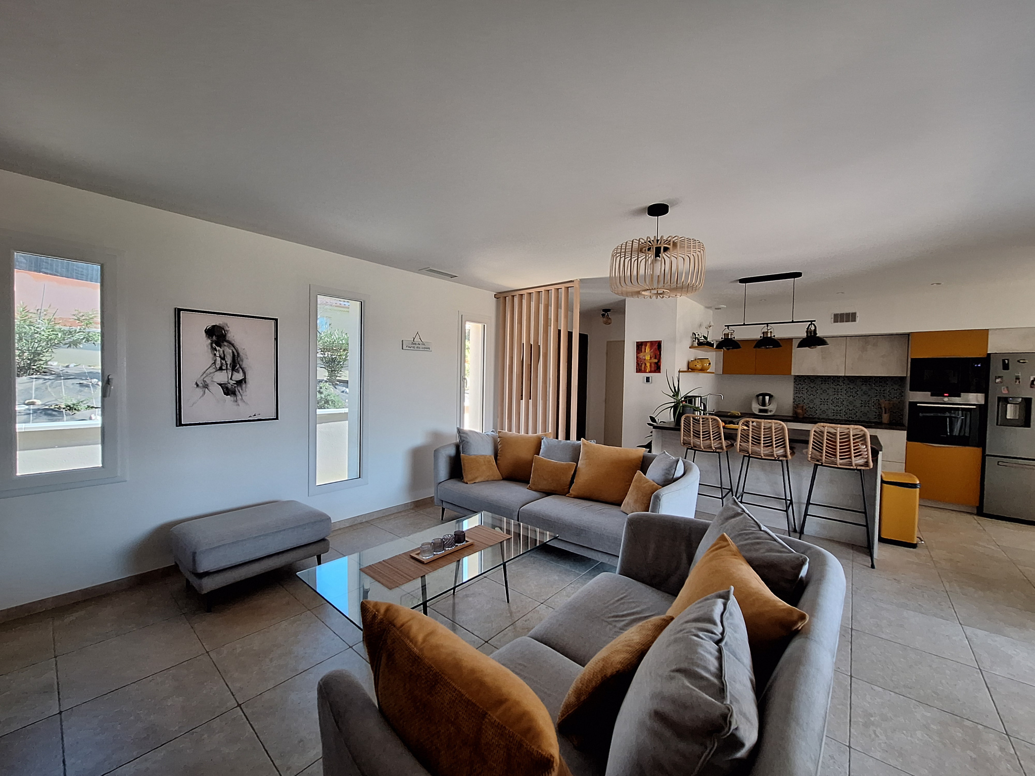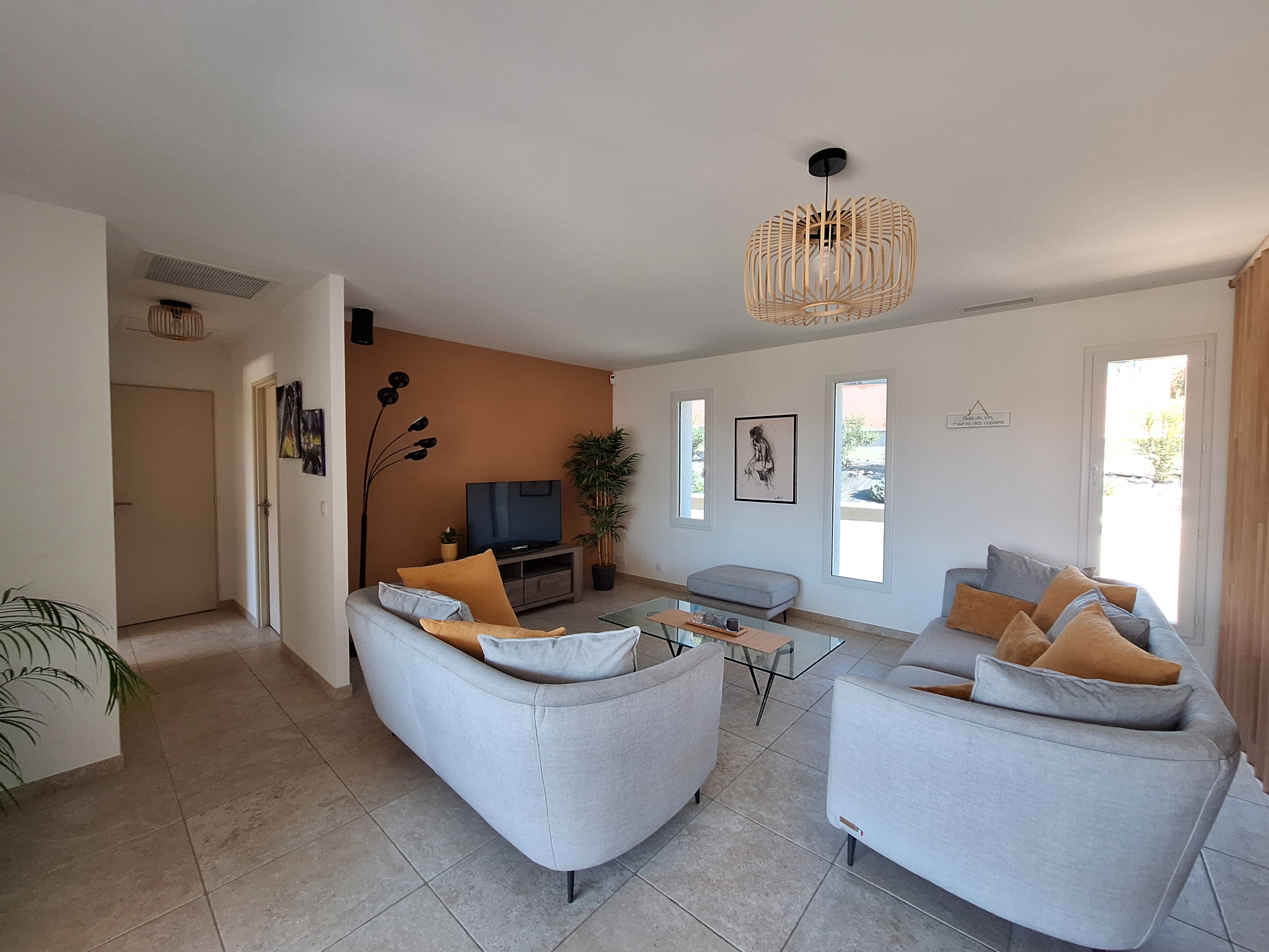 - Un vaste espace de vie lumineux de plus de 55 m² avec grande baie vitrée ouvrant directement une terrasse et le jardin